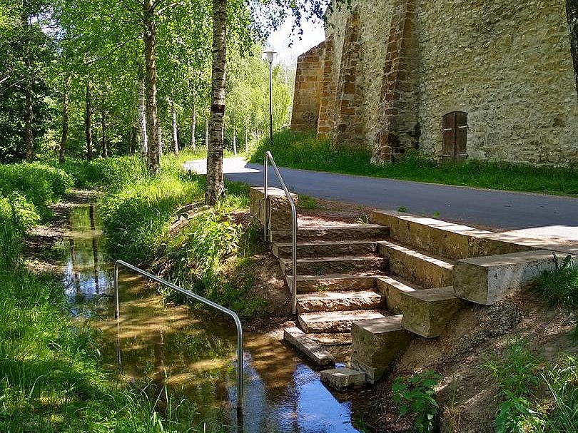 Sobald du die Burganlage verlässt, gehe rechter Hand den Weg entlang. Schon gelangst du in die Vilsaue.